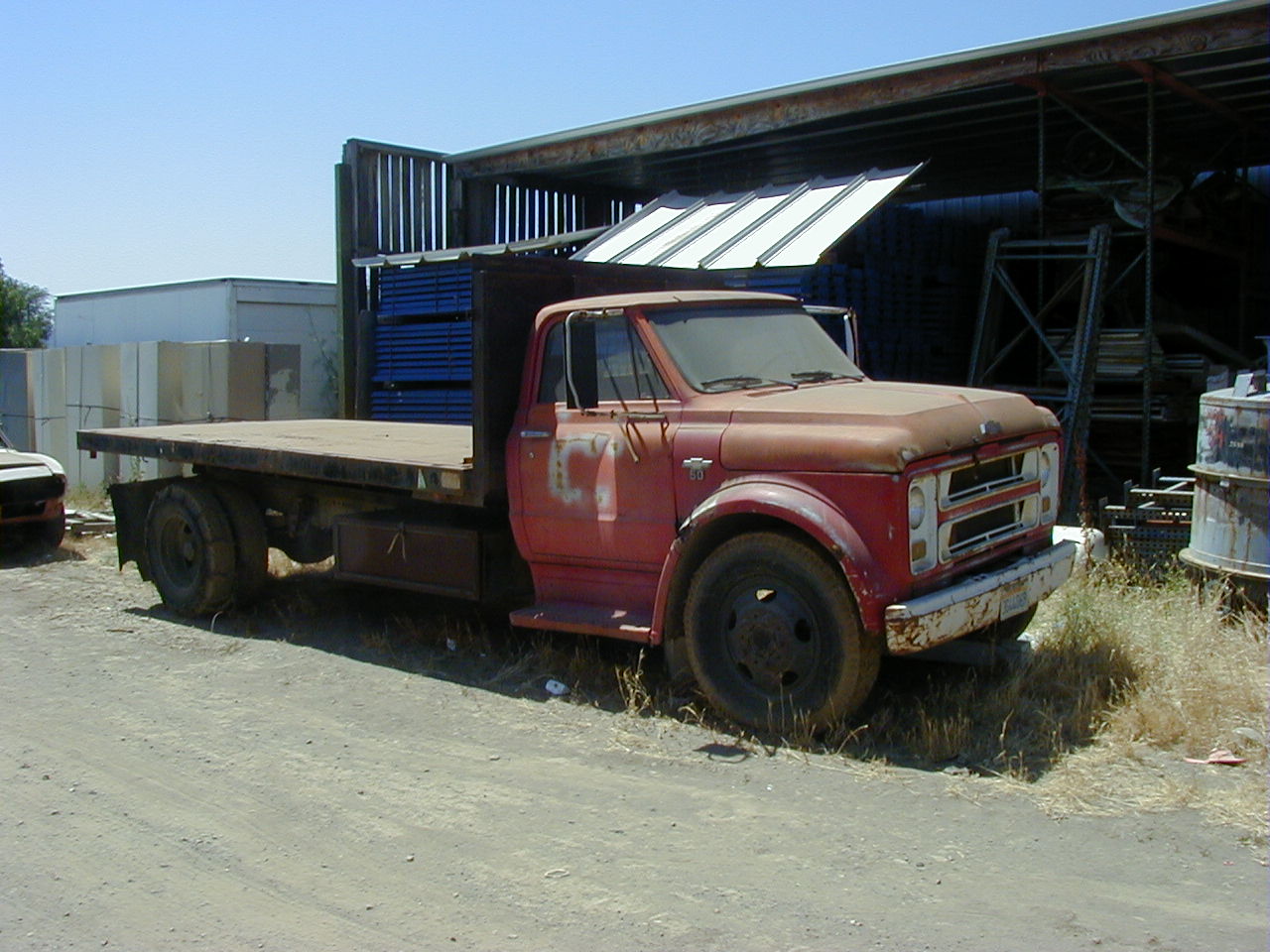 1967 CHEVY 14' FLATBED DUMP TRUCK New 350 "Target Master" engine, less than 8,000 miles, runs excellent. Steering/ brakes okay, but cab/fenders rusted, needs tires, would need substantial work to make roadworthy. No current registration. Would make a good farm/ranch truck with some work. $1,900